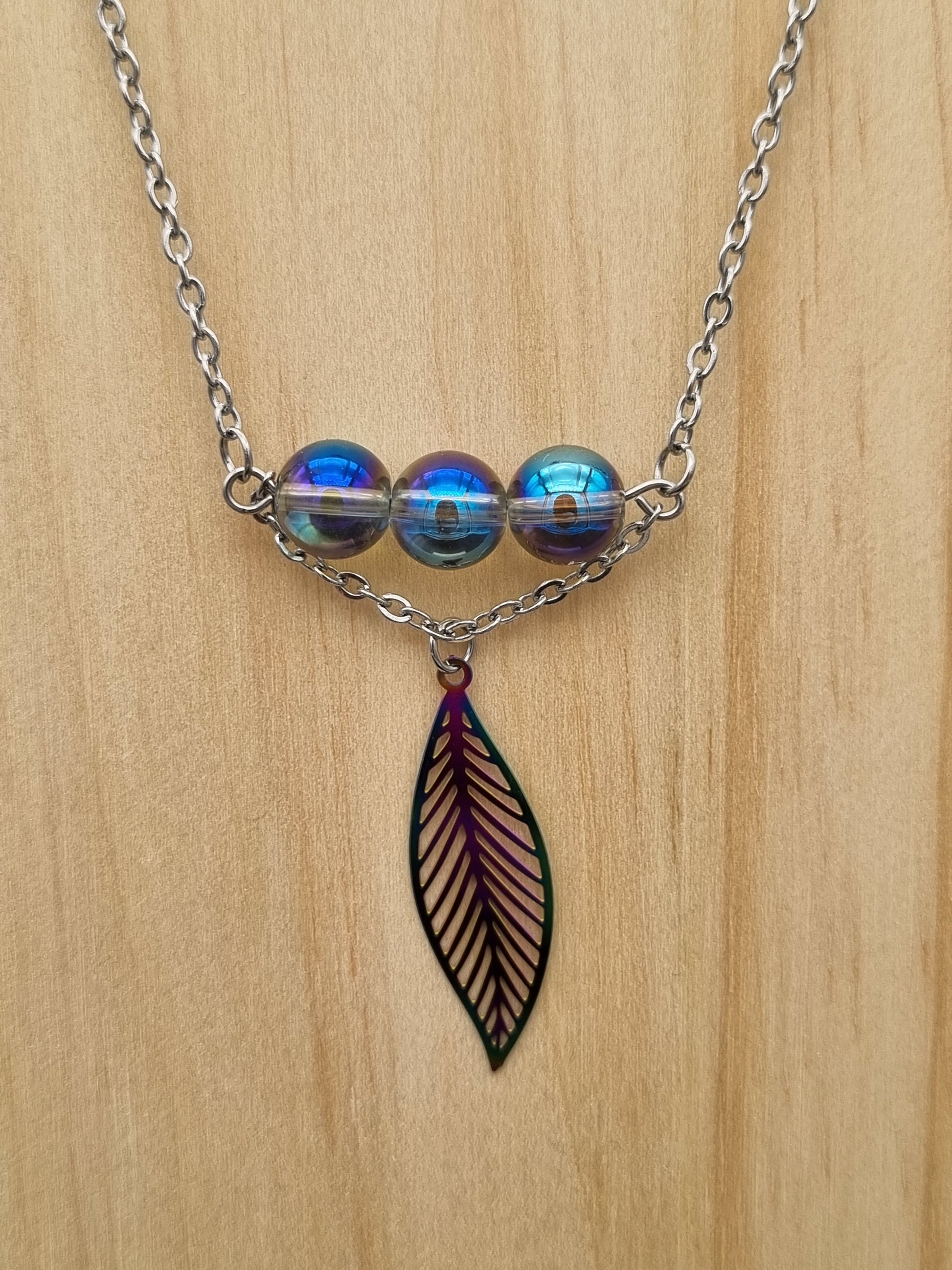 ✨ Un collier en acier inoxydable avec Aqua Aura et feuille